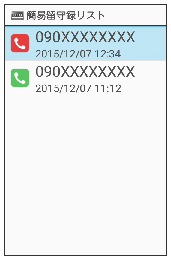 簡易留守録リストで用件を選択- 同様の操作をするたびに保護/解除を切り替えます。