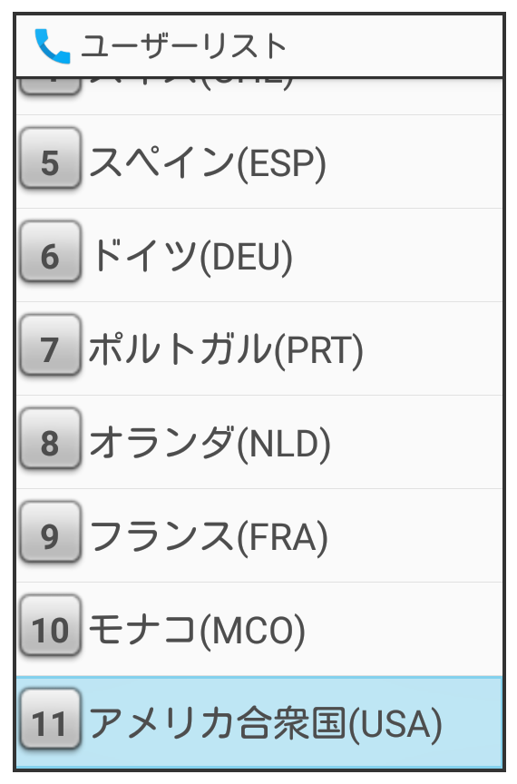国番号リスト画面で国を選択国番号を直接入力して電話をかける
