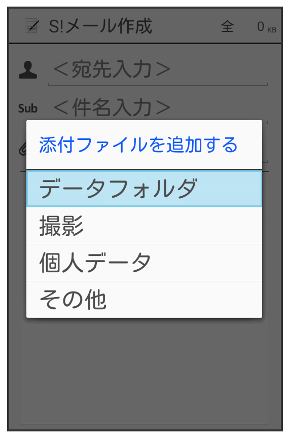- を選択すると、最近使用したデータや各機能のデータを添付できます。