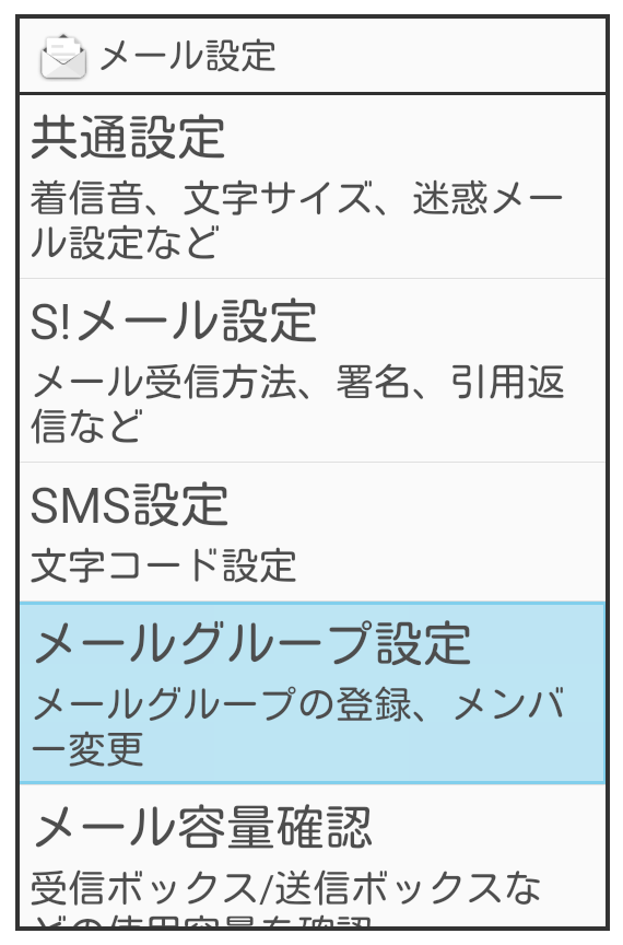 (メール)/と操作すると、すべてのグループを選択(