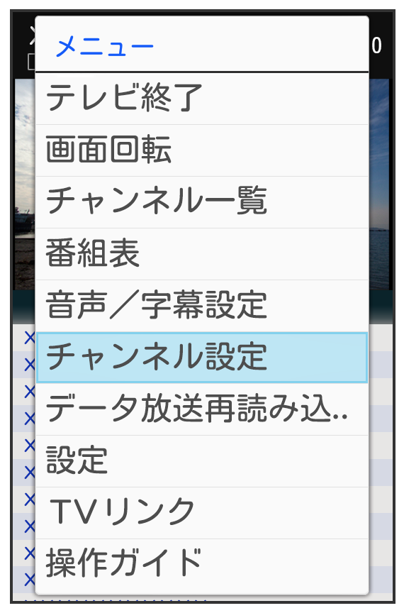 チャンネル設定画面で登録先を選択チャンネルリストを削除する