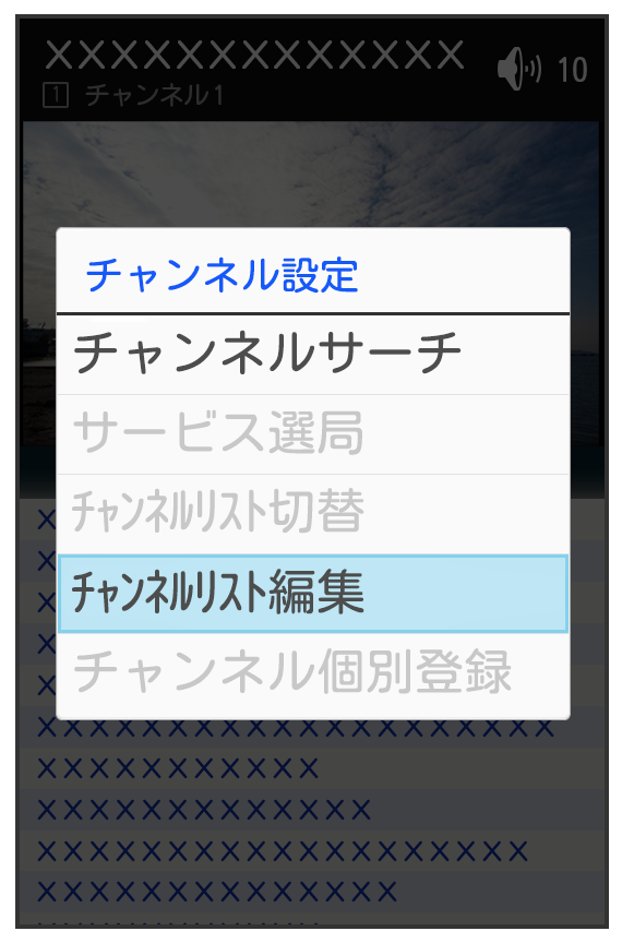 チャンネル設定画面でサービスを選択チャンネルリストを切り替える