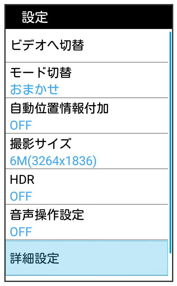 カメラ詳細設定画面で項目を選択- 静止画/動画撮影画面で