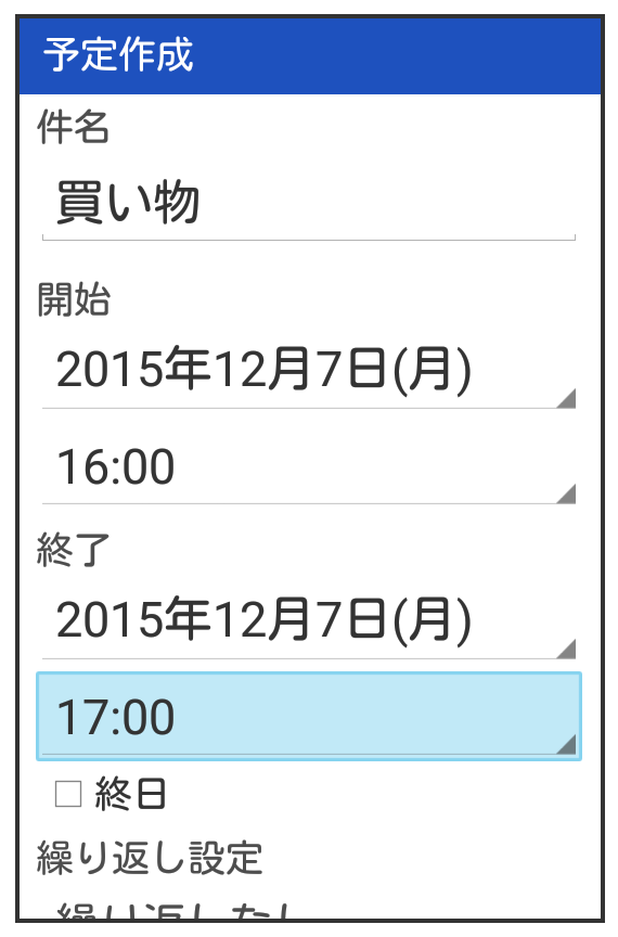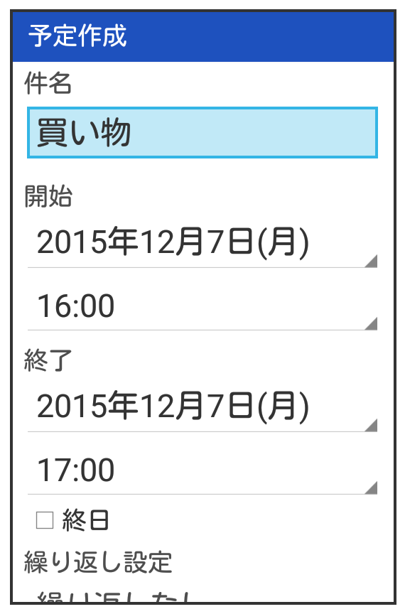 予定作成画面が表示されます。