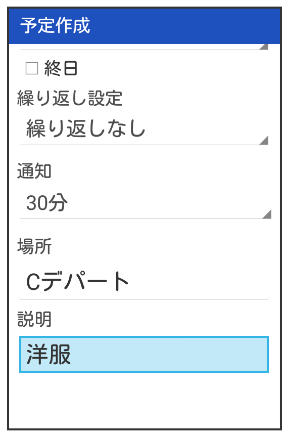 - 予定登録画面で