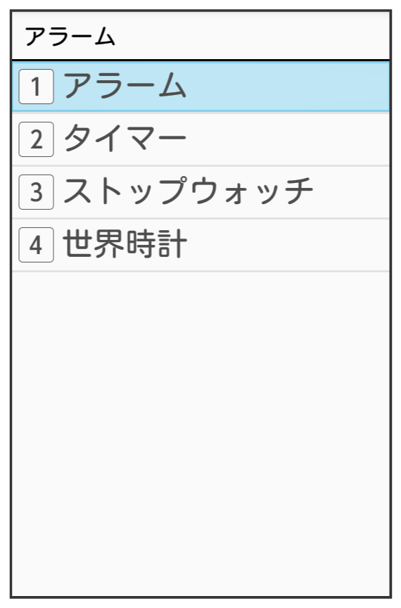 を押すと、プリセットのアラーム音と本体メモリ/SDカード内に保存されているアラーム音を切り替えます。 - アラーム音選択時に
