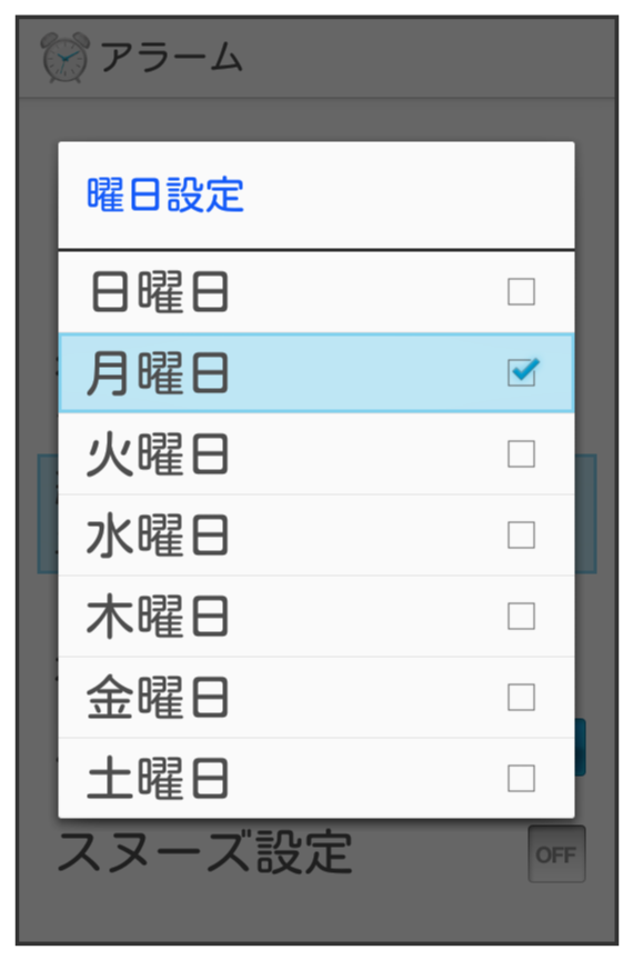 アラーム設定画面でアラーム音を選択- アラーム音選択時に