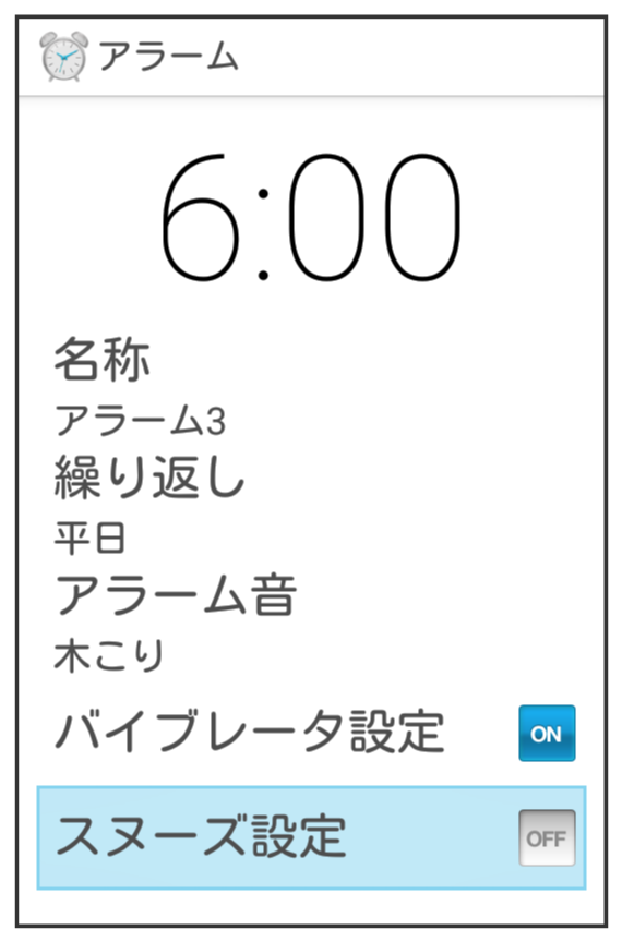 - スヌーズ(設定した間隔でくり返しアラームが鳴る機能)も設定できます。