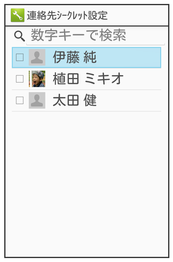 シークレットに設定した電話帳は、電話帳画面や宛先選択画面などで表示されなくなります。