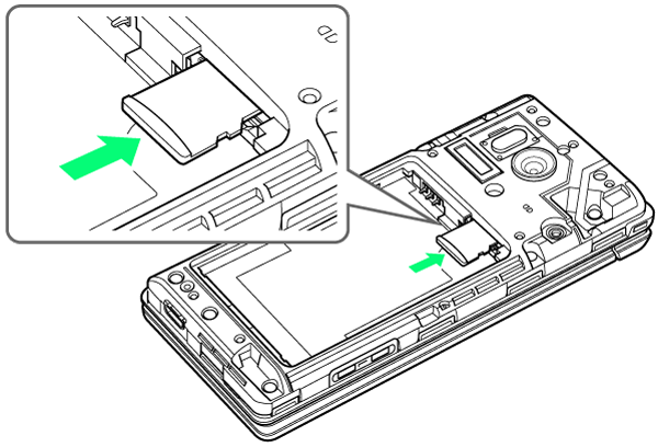 - 端子面を下にして、SDカードを奥までゆっくりと水平に差し込んでください。