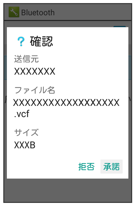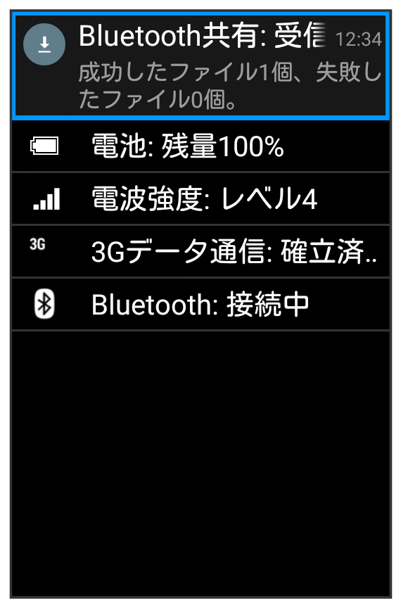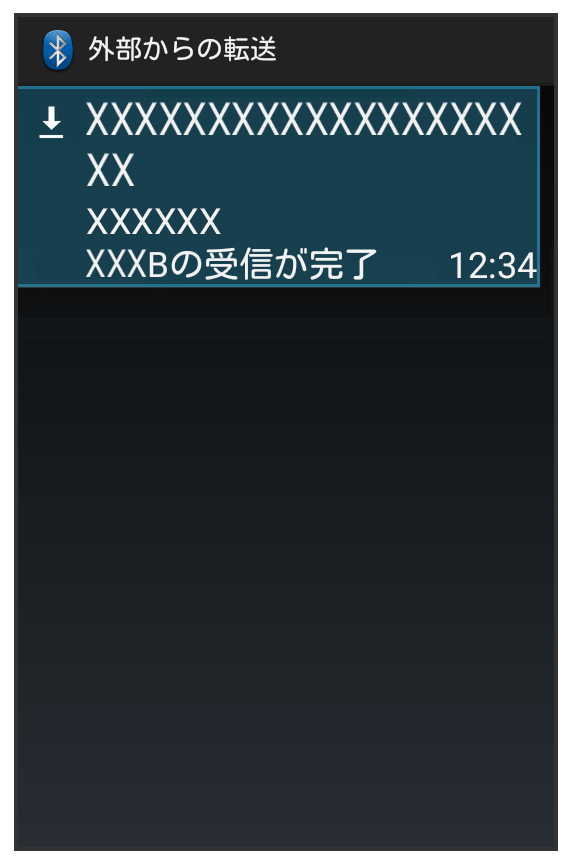 相手からデータの受信要求があると、Bluetooth®共有通知が表示されます。次の操作を行うと、受信することができます。