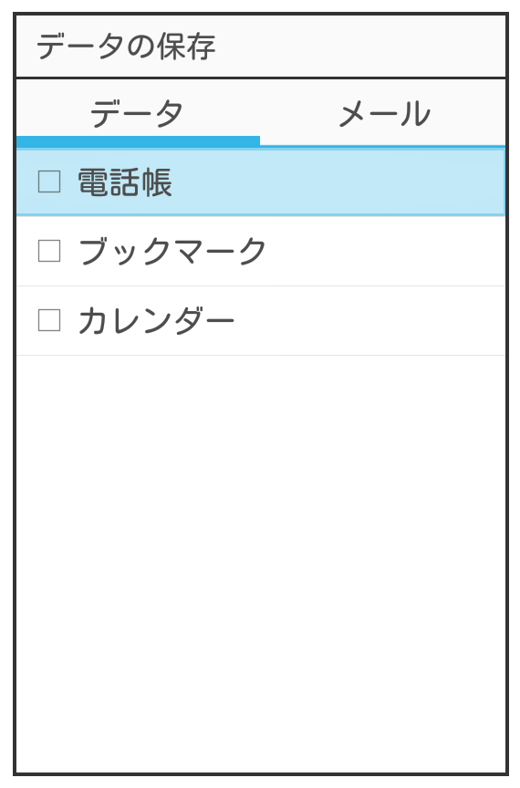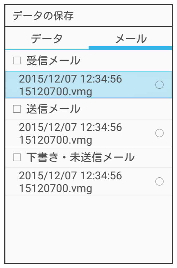 (データ作成)を押すと、本体のメールデータをSDカードに保存できます。