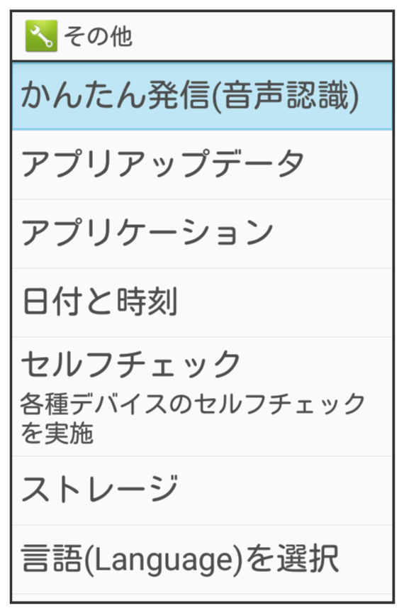 | ストレージ | 本体メモリやSDカードのメモリ容量の確認や、SDカードのマウント/マウント解除、SDカード内のデータの消去などができます。 |