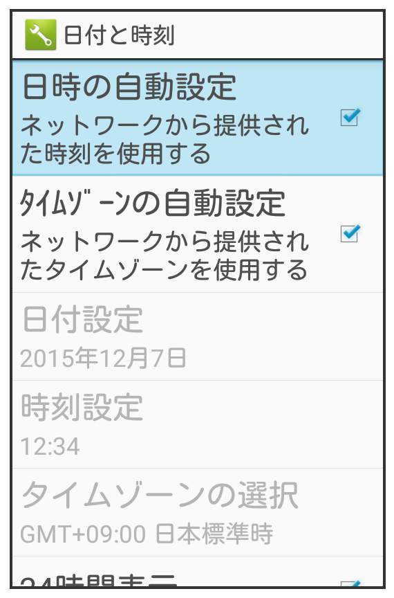 日付と時刻画面で時刻を設定- が無効のときに設定できます。