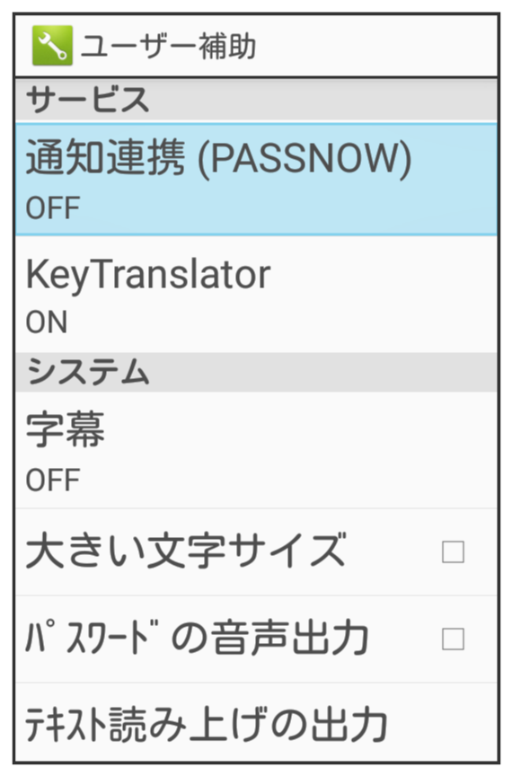 | 通知連携(PASSNOW) | PASSNOWの通知連携を利用する設定ができます。 詳しくは、「ペア設定したタブレットで着信・通知を表示する」を参照してください。 |