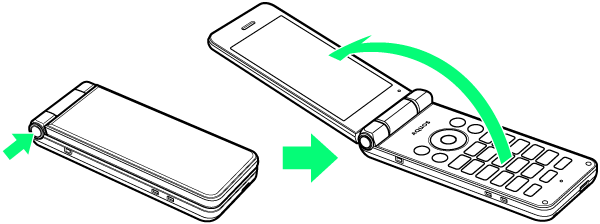 - 本機を手に持って操作してください。本機を開くときに自分の顔、人や物などの近くで端末を開かないでください。また、開くときの反動で本機を落としたりしないようにご注意ください。