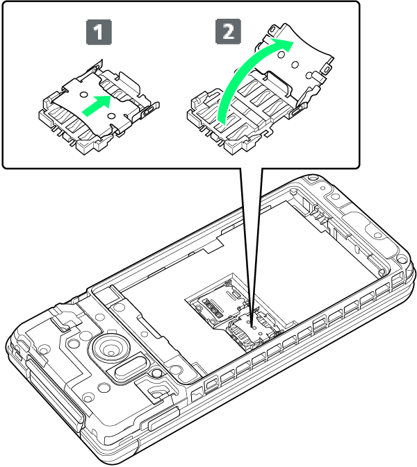)。 - ロックを外す際は、USIMカードスロットカバーをカチッと音がするまで矢印の方向にスライドさせてください。