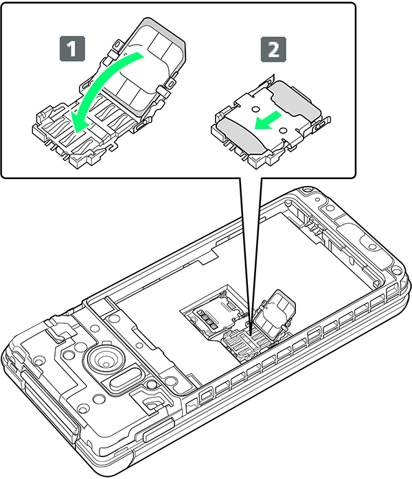 )、USIMカードスロットカバーをスライドさせてロックしてください(