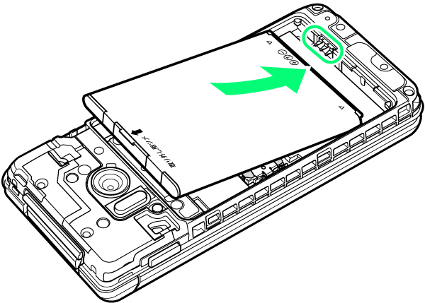 - 電池パックの先を合わせて、矢印の方向に取り付けてください。
