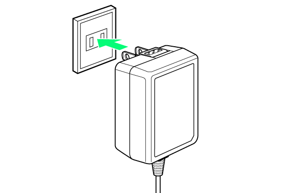 ACアダプタのプラグを起こし、家庭用ACコンセントに差し込む