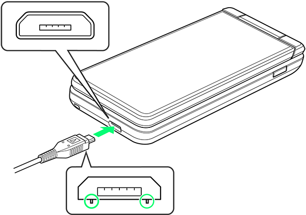 - microUSBプラグを誤った向きに差し込むと、本機の外部接続端子が破損することがあります。microUSBプラグの形状と向きをよく確かめて、突起(○部分)を下にして差し込んでください。