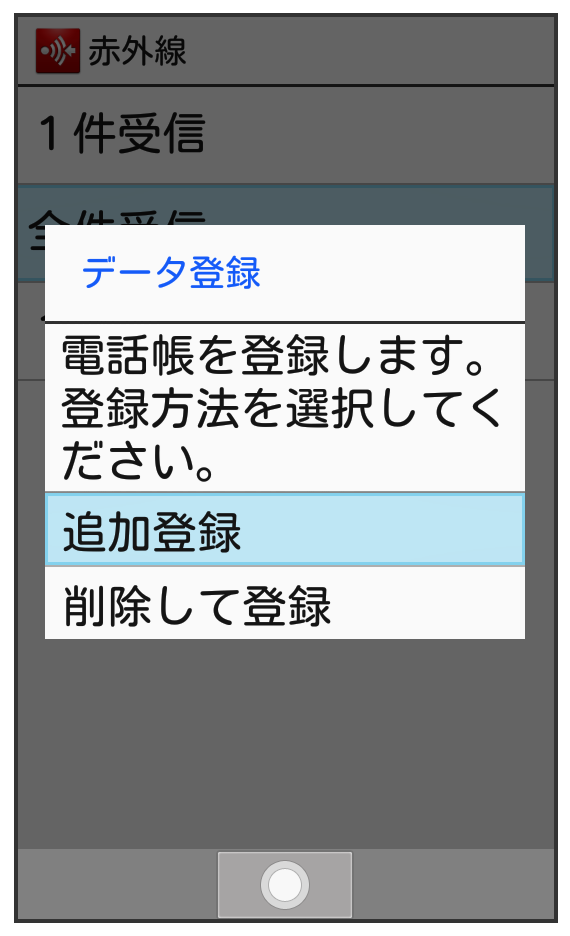 - 本機のデータを削除して登録するときは、と操作します。このときは、画面に従って操作してください。
