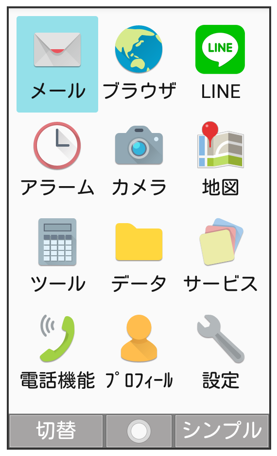 | メール | S!メールやSMS、PCメールの送受信ができます。 |