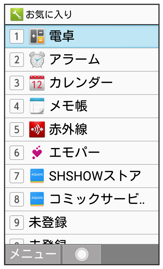 お気に入りに登録されている機能のリストを表示して、そこから機能を呼び出します。