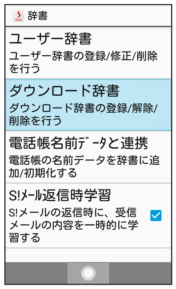 ダウンロード辞書画面が表示されます。