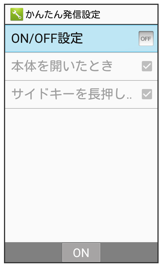 表示)を入れると、本機を開いたときにかんたん発信が有効になります。 - にチェック(