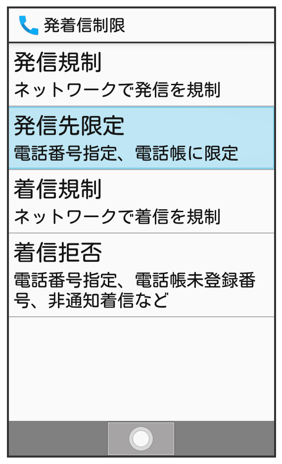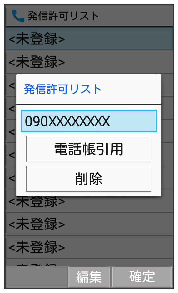 発信許可リスト画面で電話番号を選択- と操作して電話帳から電話番号を入力することもできます。