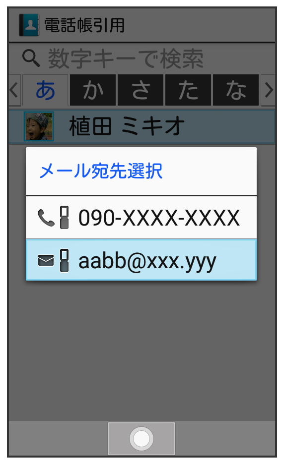 - と操作すると、メールグループを選択して、メールグループに登録されたすべての宛先を送信する宛先に設定できます。