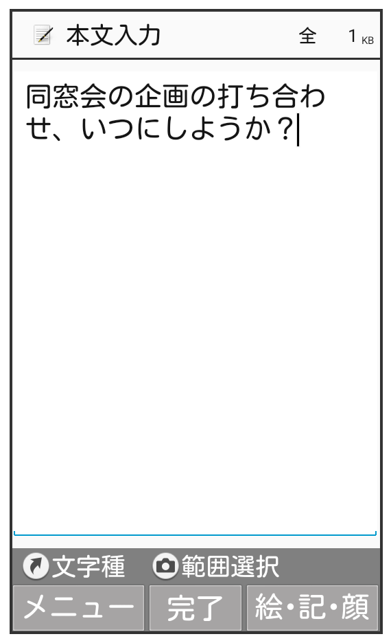 を押して、画面を切り替えると、作成中のS!メールを下書きとして保存できます。
