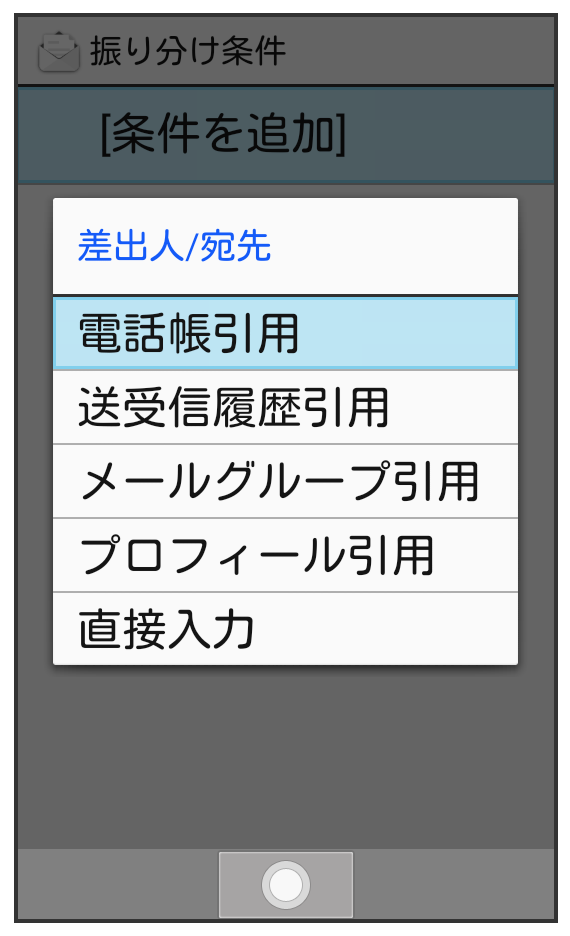 - 条件追加時にと操作すると、電話帳に無いアドレスを条件に追加できます。