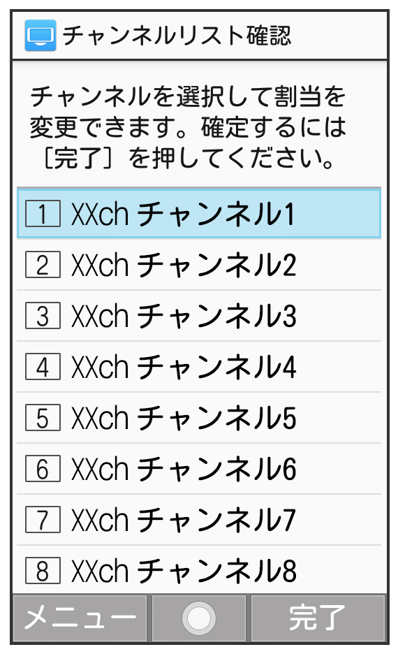 チャンネルのスキャンが始まり、終了するとチャンネルリスト確認画面が表示されます。