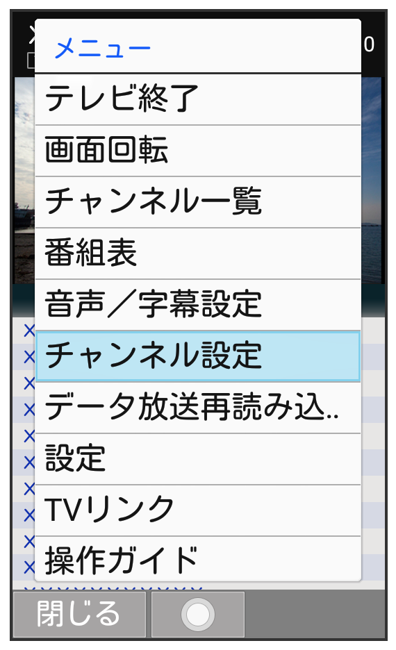 チャンネル設定画面でチャンネルリストを選択視聴中のチャンネルをチャンネルリストに登録する