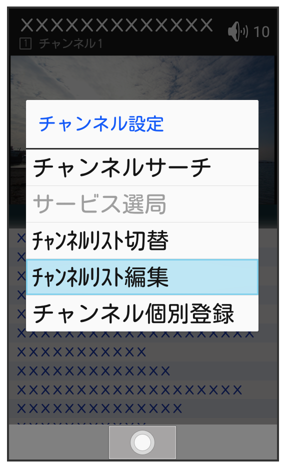 チャンネル設定画面で登録先を選択チャンネルリストを削除する