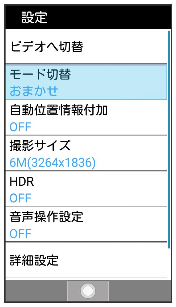 | パノラマ | パノラマカメラに切り替えます。 |