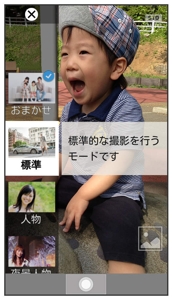 | 標準 | 標準的な撮影を行うモードです。 |