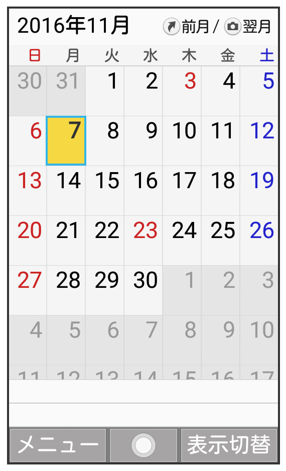 カレンダー画面が表示されます。