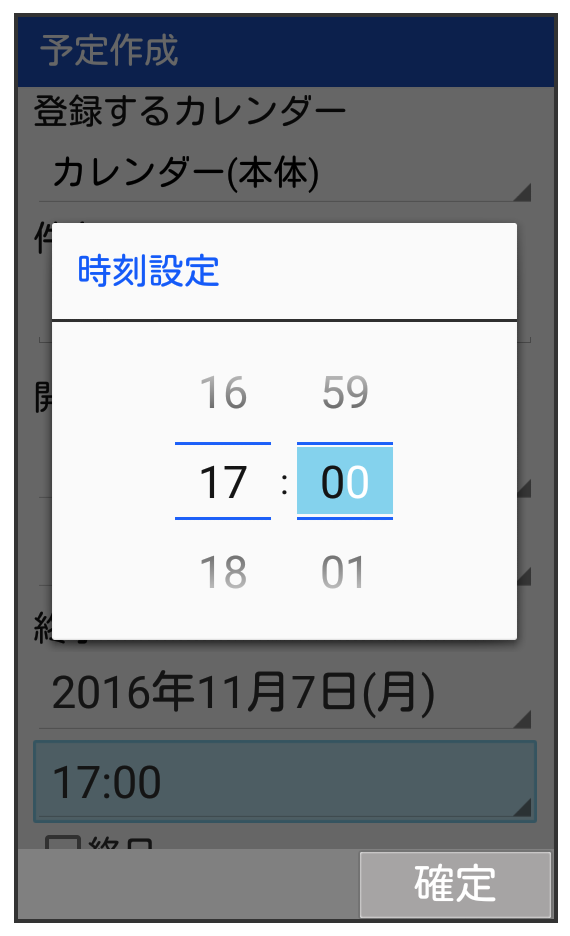 - 予定が終日となるときには、終日をチェックします(