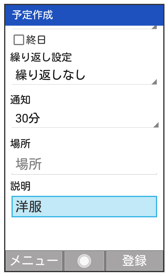 - 予定登録画面で