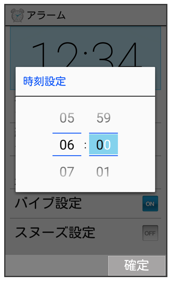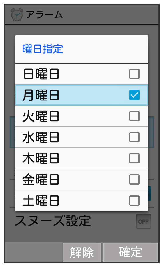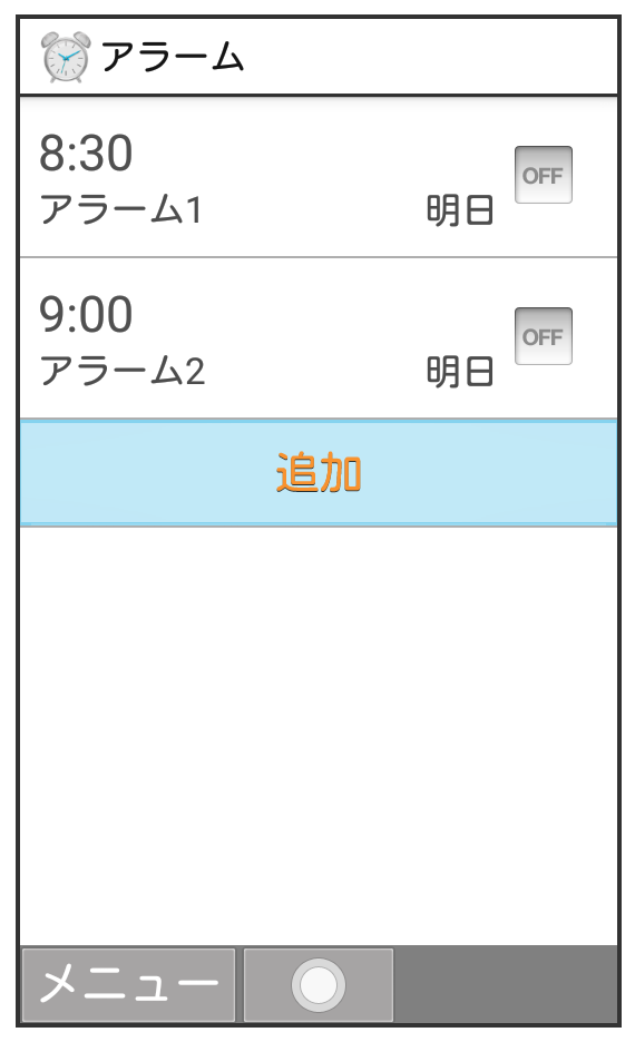 アラーム設定画面で