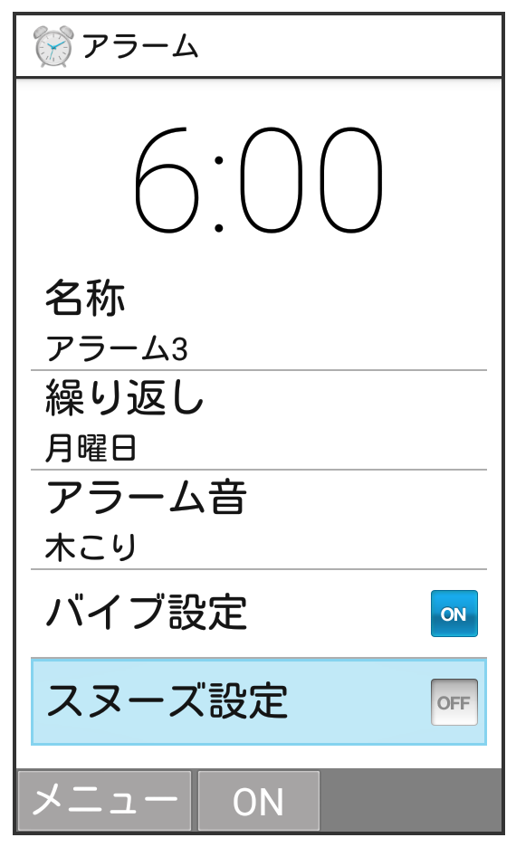 - スヌーズ(設定した間隔でくり返しアラームが鳴る機能)も設定できます。