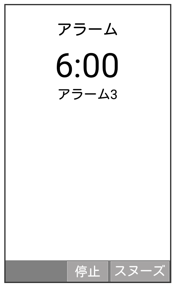 以外のボタンを押すとスヌーズ待機状態になり、設定した間隔で繰り返しアラームが鳴ります。