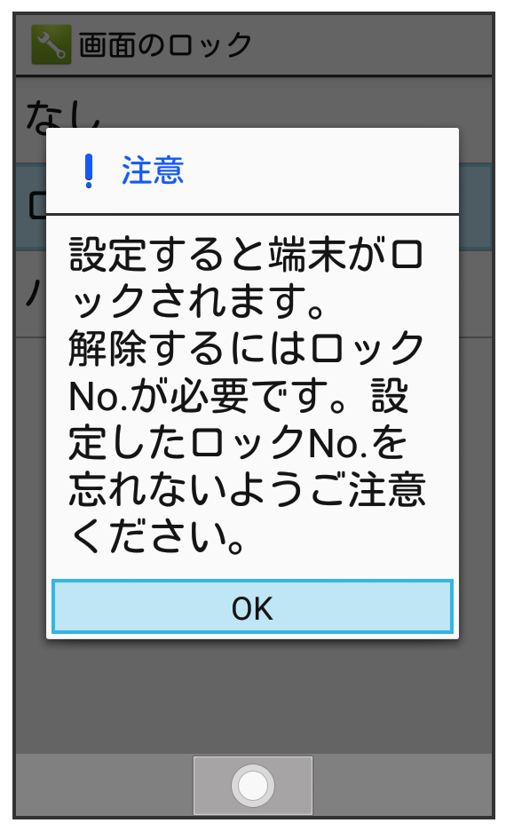 画面のロック設定画面で、ロックNo./パスワードを入力画面ロックについてのご注意