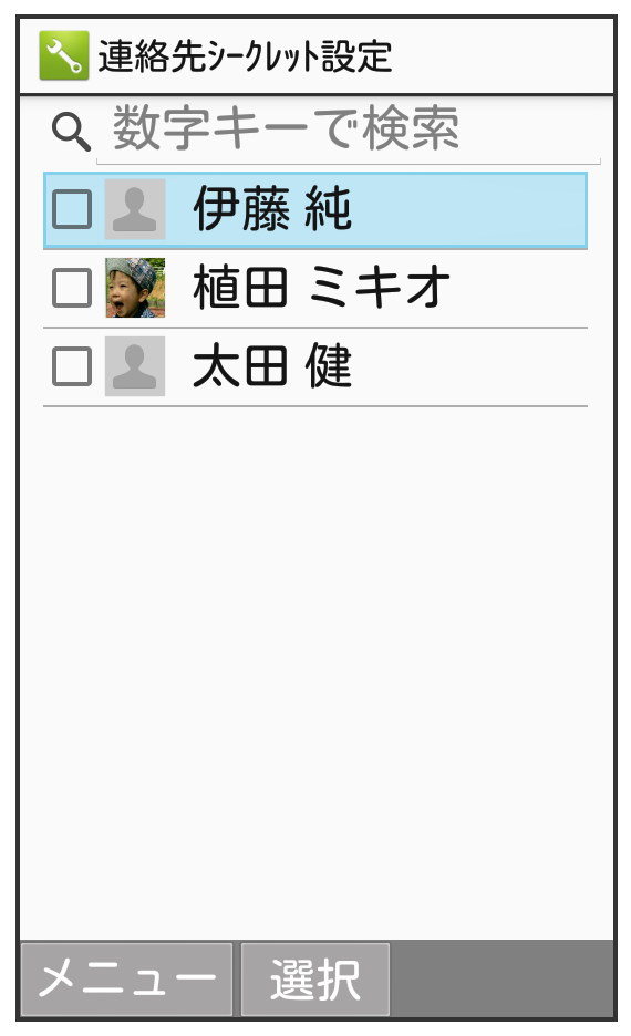シークレットに設定した連絡先は、電話帳画面や宛先選択画面などで表示されなくなります。