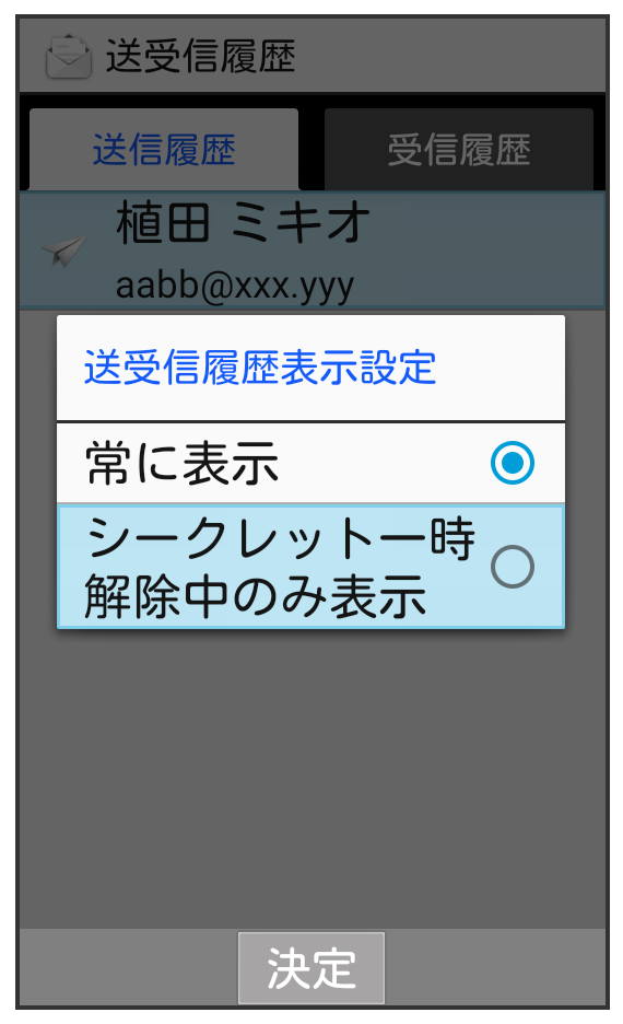 送受信履歴をシークレットに設定すると、メール作成時やメールグループ設定時に、送受信履歴が引用できなくなります。