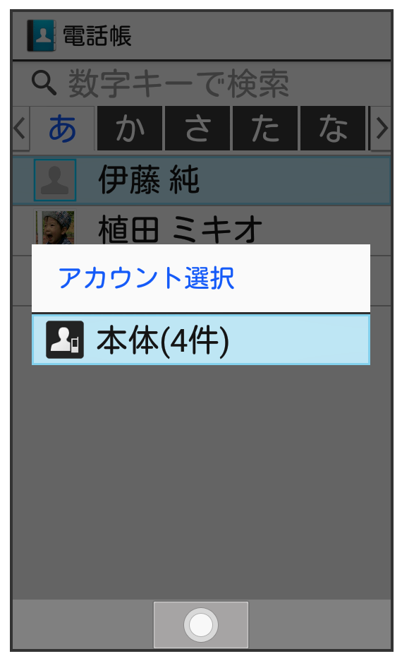 電話帳画面が表示されます。