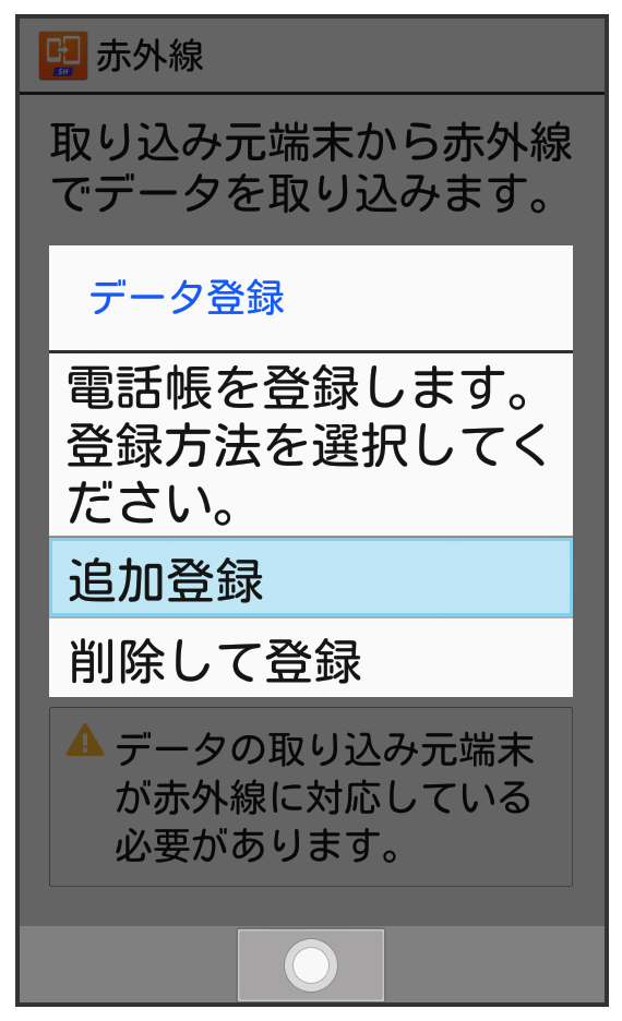 - 本機のデータを削除して登録するときは、と操作します。このときは、画面に従って操作してください。